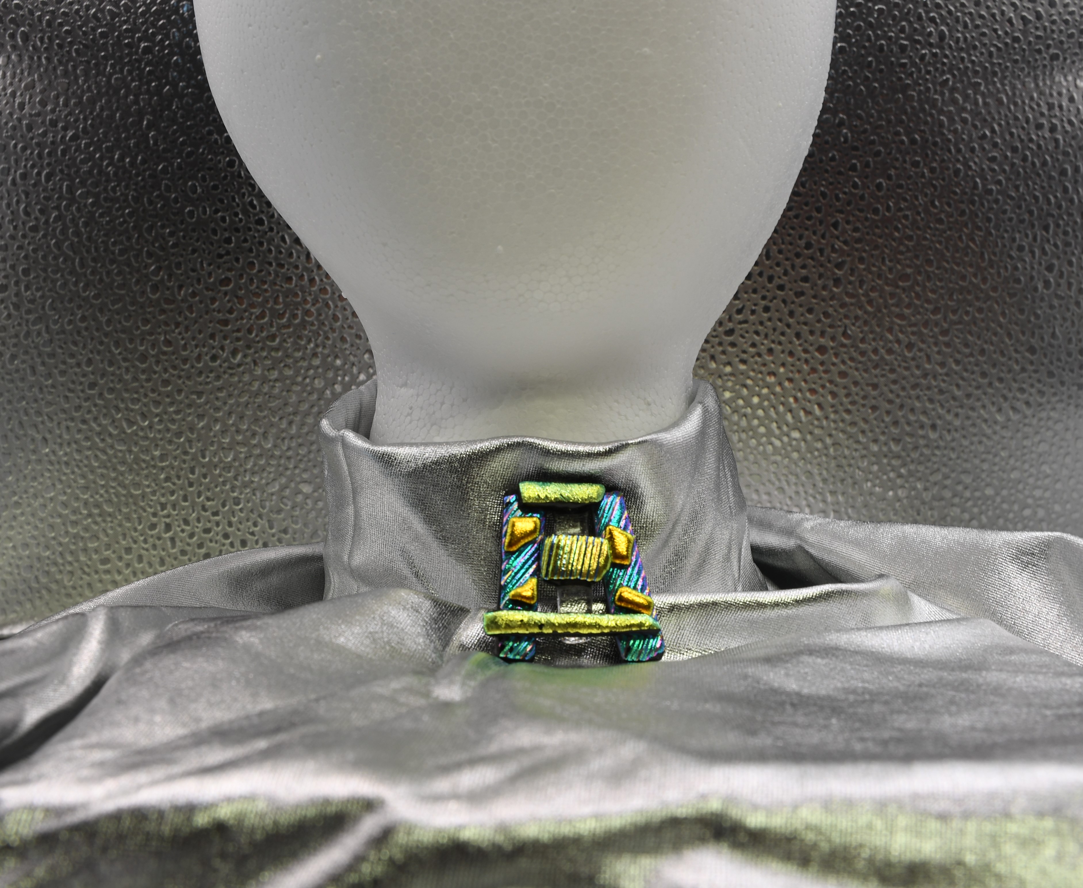 Gorgeous one-of-a-kind fused glass pendant using dichroic glass and clear. Can be worn on a chain or a ribbon with elegance. One of a kind.